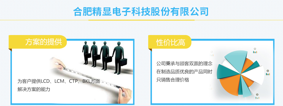 ?合肥精顯電子科技股份有限公司成立于2012年,由液晶行業知名企業廈門精顯電子有限公司投資建設,是一家研發、生產、銷售高品質液晶屏(LCD)、液晶顯示模塊(LCM)、背光(LED)、電容式觸摸屏(CTP)等節能環保產品并能為顧客提供解決方案的高新科技企業。 ?公司占地55畝,擁有建筑面積超過20000平米和潔凈廠房5400平米。 ?公司擁有一個超過15年以上LCD行業運營制造經驗的團隊。 ?公司獲得研發專利20余項。 ?公司通過C-TPAT認證,ISO9001:2008認證,產品通過了ROHS、REACH。 ?我們產品廣泛應用于智能儀表(水表,電表,氣表)、家電、儀器儀表、計量器械、文教 器具、UPS電源、智能手機機、平板電腦等電子產品的顯示和控制。目前我們已樹立了良好的品牌形象,并與眾多公司(如GE, Ja...更多>